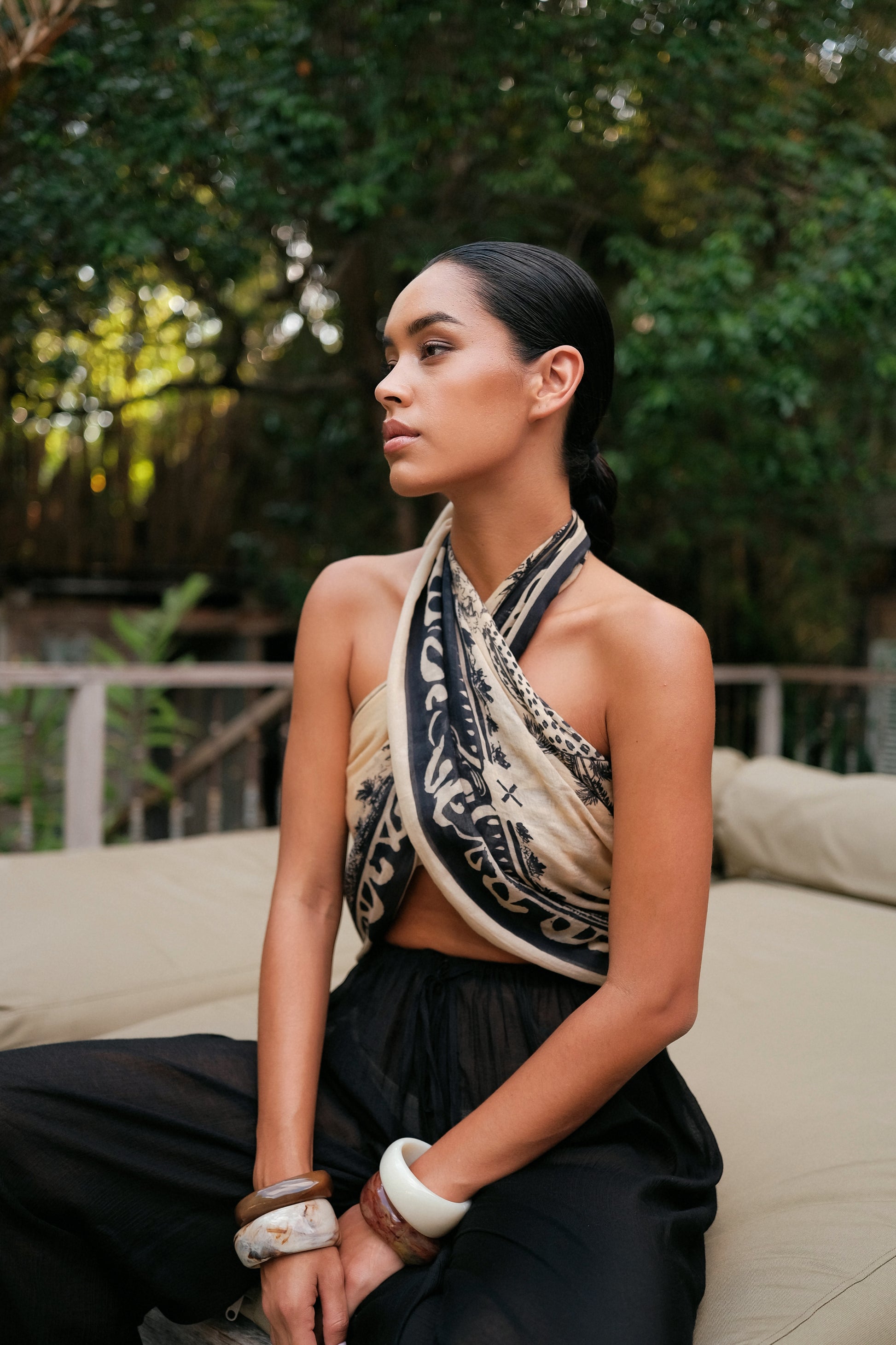 Made of soft, lightweight material (55% cotton, 45% modal), these scarves feel comfortable and versatile, they can be worn as a top, pareo, bandana, or neckpiece.